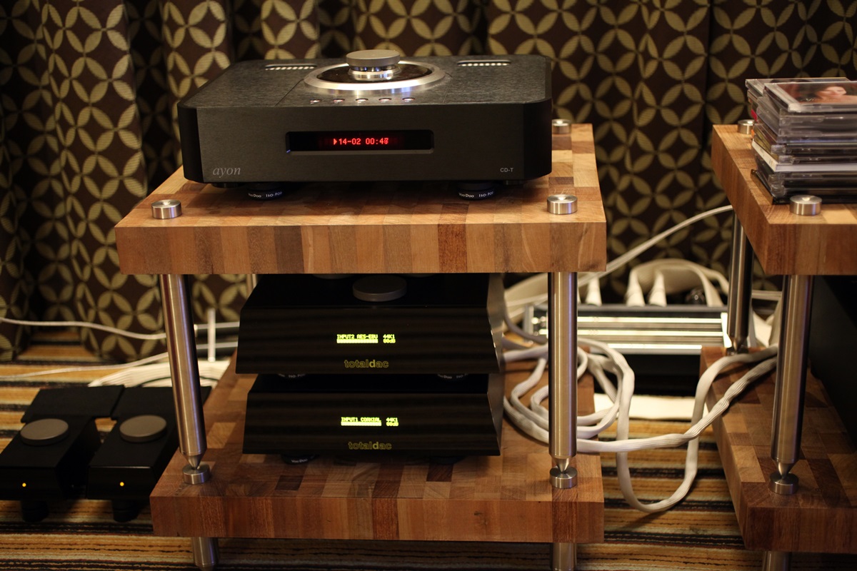 Audionote were showing off a pair of Devialet Phantoms in the next room. They placed a bottle of water on top and cranked it up very loud, to demonstrate how little vibration the cabinet had.