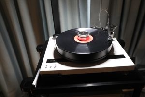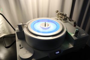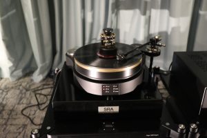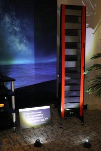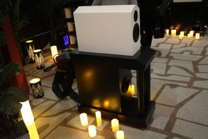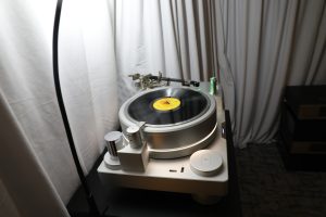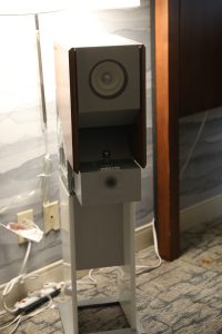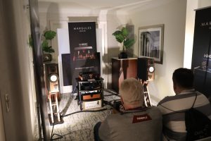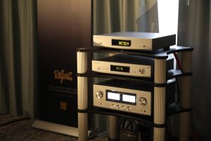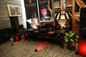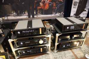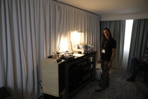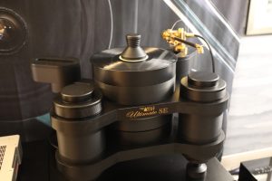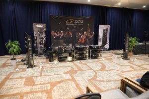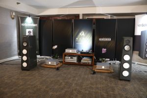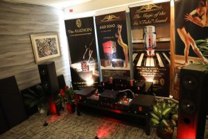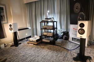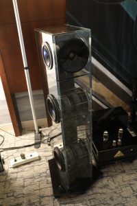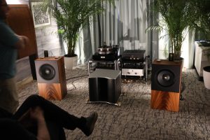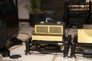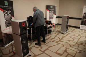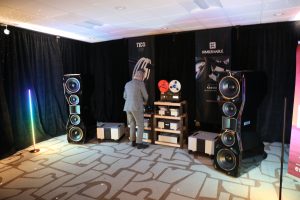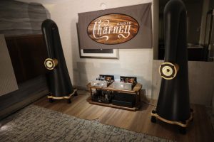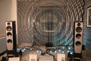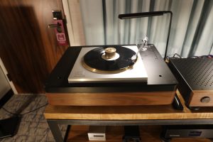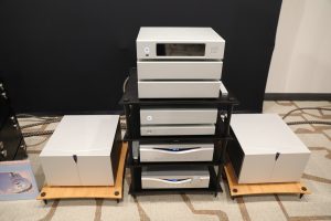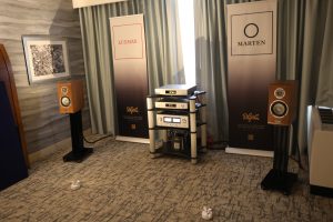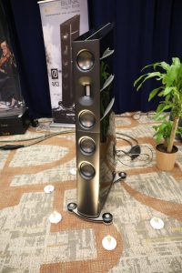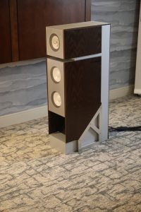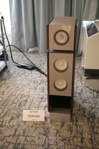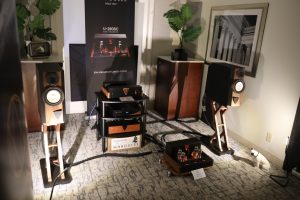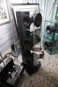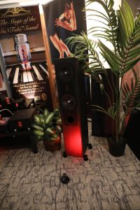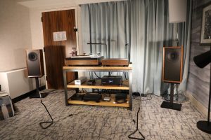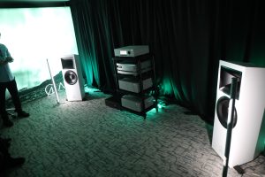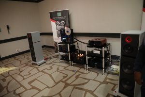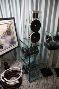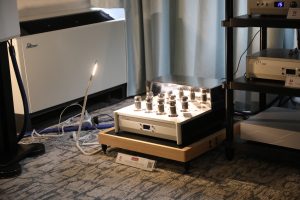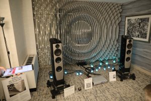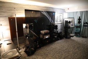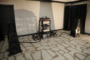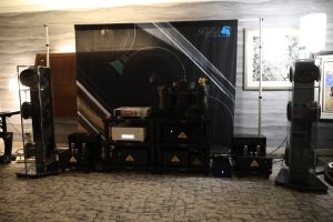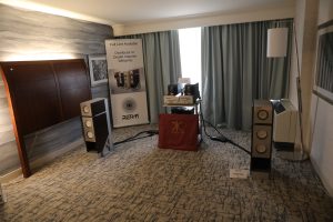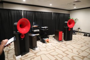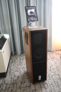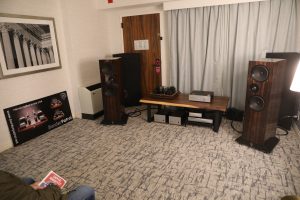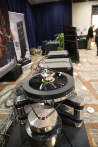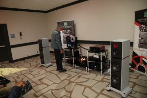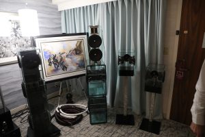 The first thing I asked was “where’s the subwoofers?” “There are none,” was the response. I then gathered myself, listened more intently, and discovered that the Popori Acoustics WR2 Arrabonas are expensive, yes, but cheap compared to other electrostats, especially in terms of looks and performance. I’m pretty familiar with the BACCH SP and consider it a Godsend for anyone trying to enhance their system’s performance (especially a digitally based one). Of all the folks at the show, Unique Home Audio was the only one boasting a BACCH setup, and it was immediately apparent from the low-end energy produced in this way-too-small-for-this-system hotel room. Marvelous!